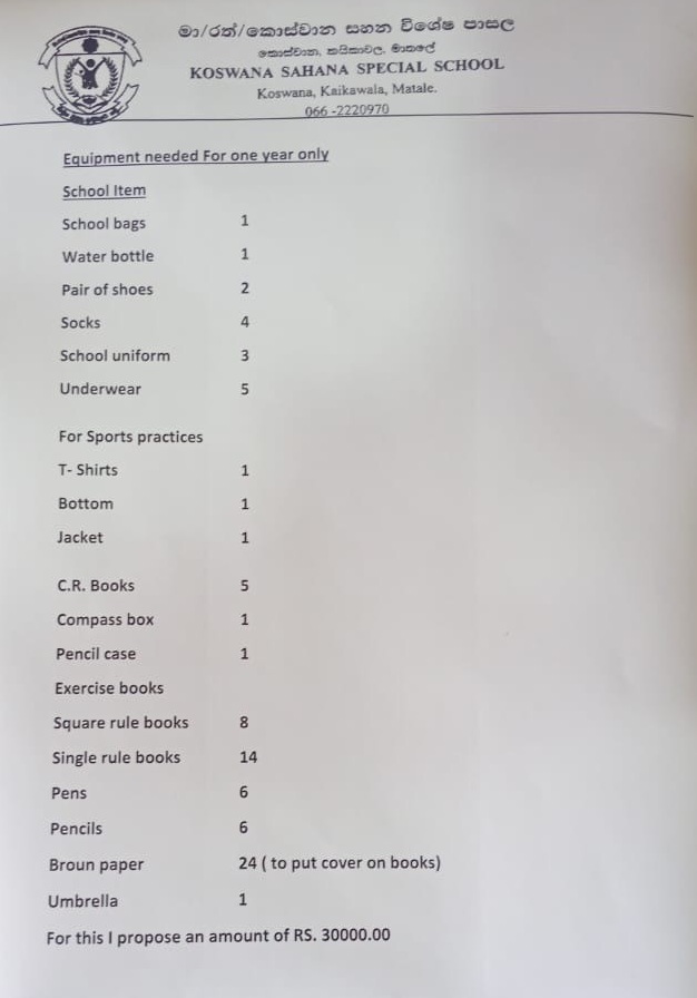 We extend our heartfelt gratitude to Prof. Mr. and Mrs. Arambepola for their generous donation of £1,400, dedicated to supporting 11 students from Mathale Kaikawala, Koswana Sahana Special School who were severely affected by the recent floods and landslides.