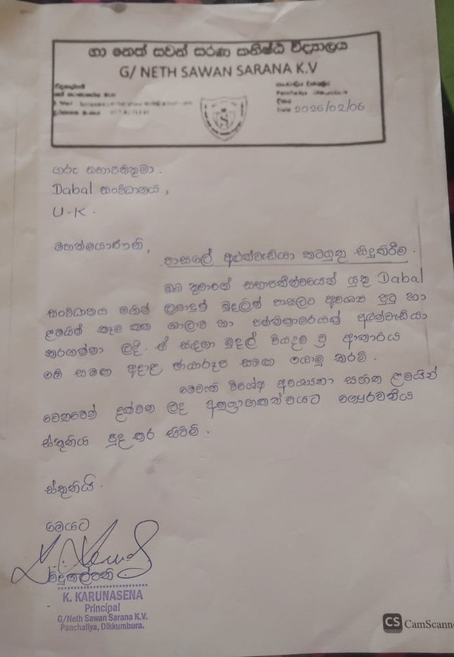 We are pleased to announce the successful completion of the latest project at Galle Neth Savan Sarana School, made possible through the generous support of our long‑standing donors, Romie and Ranil.